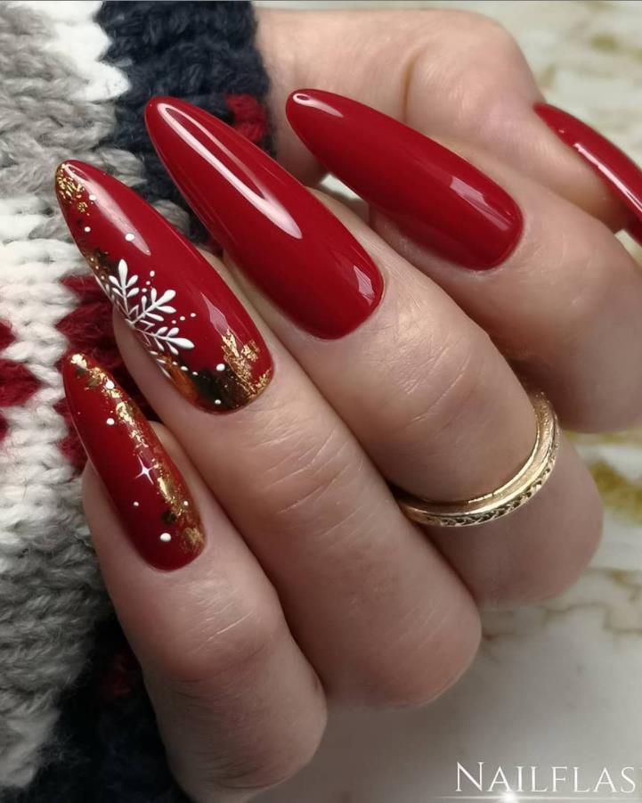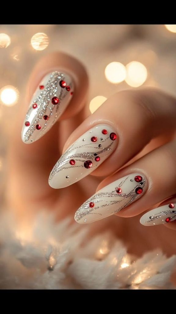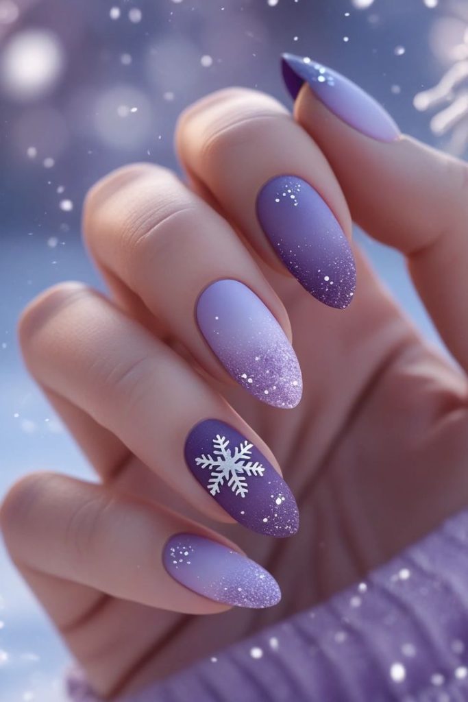 Дизайн зимового манікюру часто асоціюється зі снігом і морозними візерунками. Сніжинки, в’язані мотиви, геометрія, тонкі лінії сріблом або білим кольором додають нігтям зимового шарму.