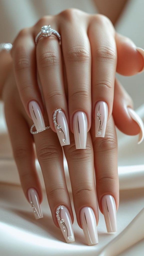 Не менш популярними залишаються світлі відтінки — молочний, айворі, холодний беж, які створюють ефект чистоти та елегантності. Для святкових подій ідеально підійдуть металеві лаки, глітер і дзеркальна втирка.