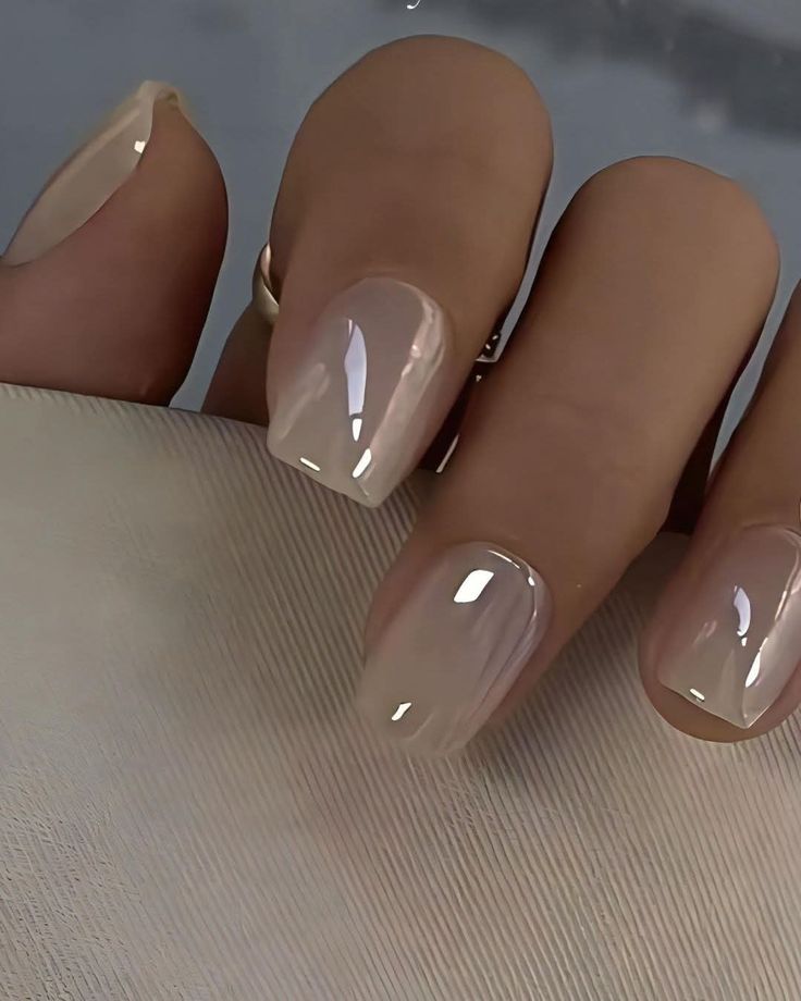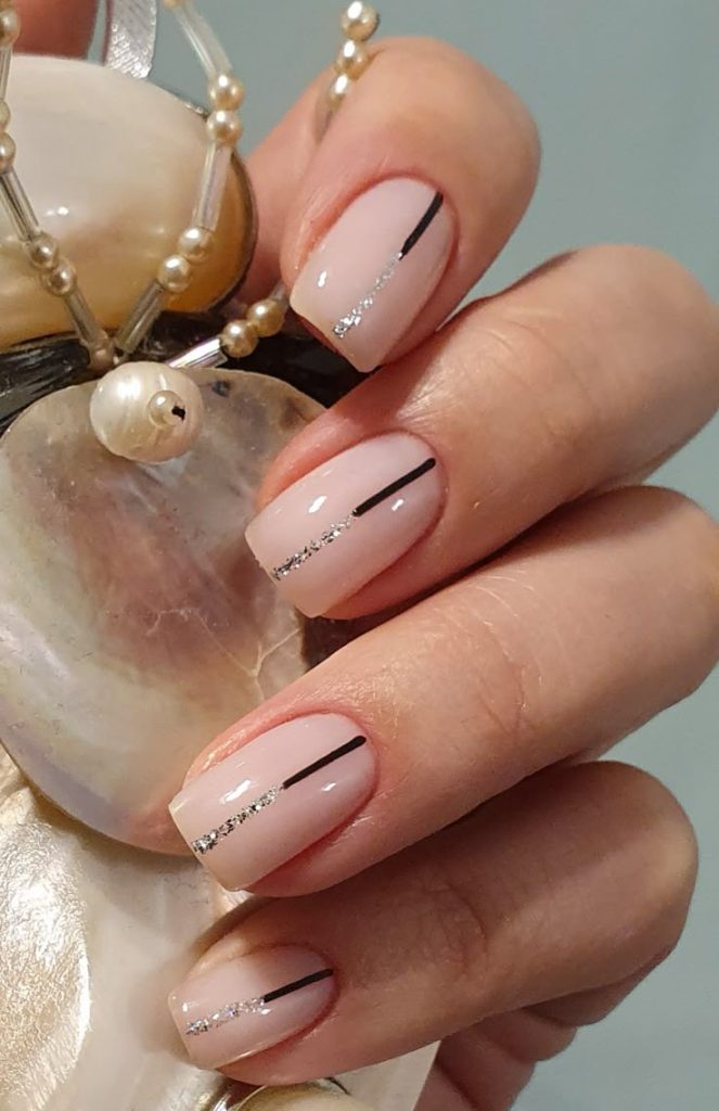 Для тих, хто любить мінімалізм, підійдуть нюдові відтінки з невеликими акцентами — тоненькими лініями, мікрокамінцями або однією сяючою нігтьовою пластиною. Це універсальне рішення як для роботи, так і для свят.